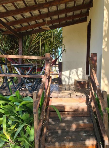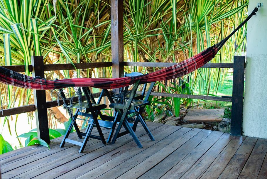 Além do mais, conta com uma varanda com rede e um deck suspenso…ideal para tomar um vinho, embaixo de uma árvore.