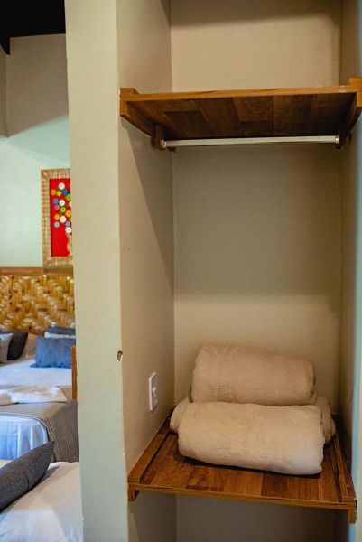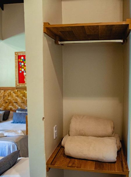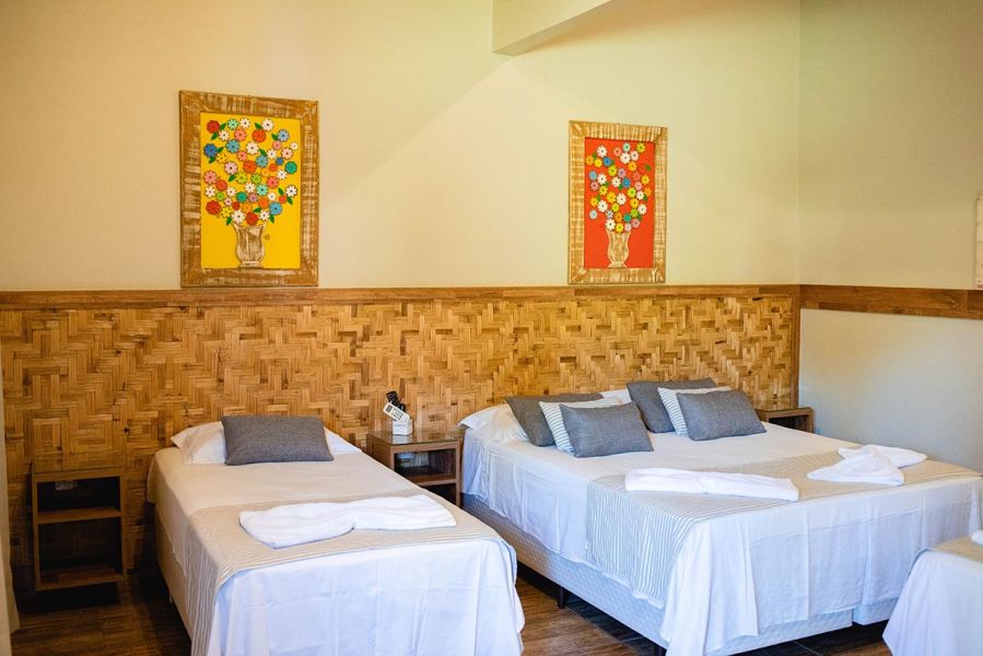 Ampla e bem decorada, com uma (1) cama queen e duas (2) de solteiro. Possui banheiro maravilhoso, ar-condicionado, TV de 40 polegadas com sky, além de conter um frigobar retrô para completar o requinte desta suíte.