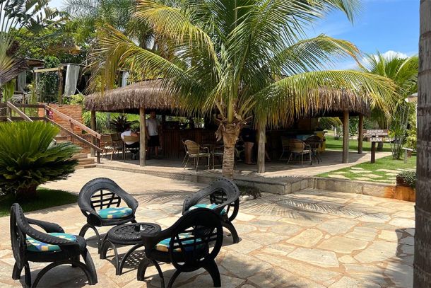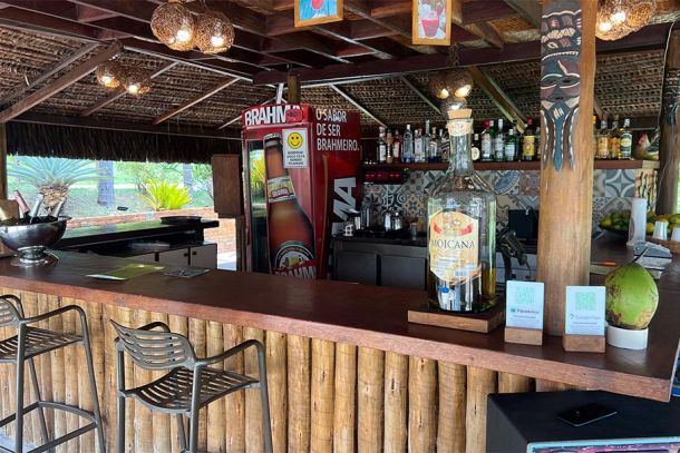 O bar do parque aquático foi todo projetado e construído em um espaço peculiar, com coqueiros inspirados naquele toque praiano, além de conter uma vasta área verde, a fim de proporcionar momentos de tranquilidade e descanso, em meio à natureza.