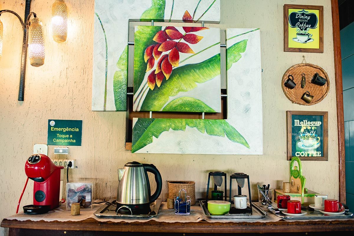 O Hotel trabalha com o sistema de pensão completa: café da manhã, almoço, jantar e sobremesa inclusos. Bebidas são à parte.